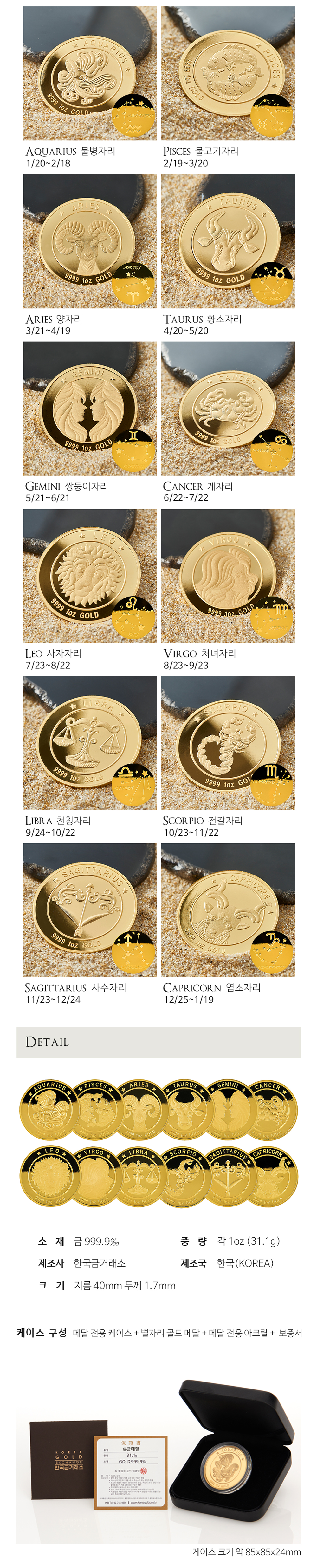 1온스 황도 12성좌 별자리 골드 불리온 메달